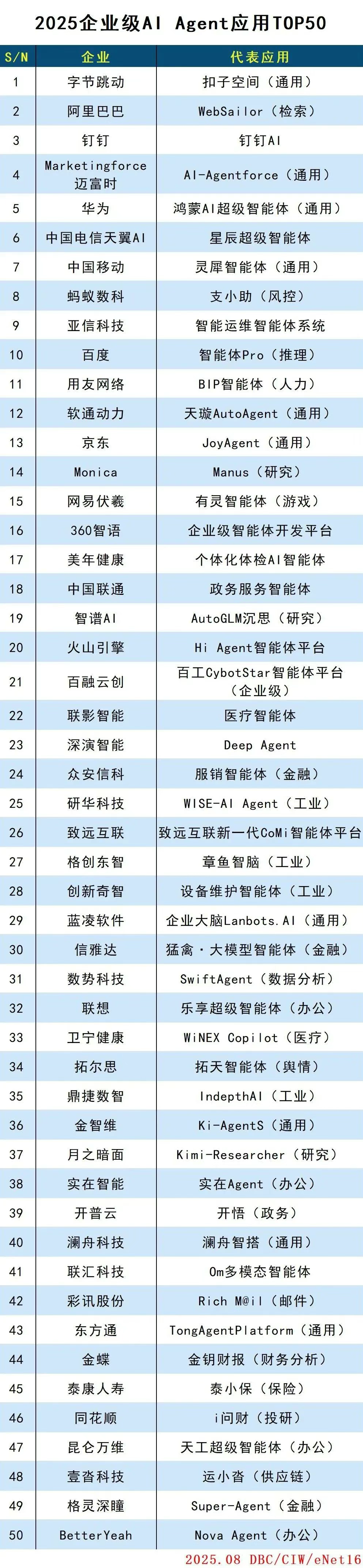 近日,德晋贵宾厅智能其AI智能体平台Deep Agent成功入选德本咨询(DBC)发布的“2025企业级AI Agent应用TOP50”榜单。这是该平台继入选IDC《中国AI Agent应用市场概览》报告后,再次获得权威机构认可。